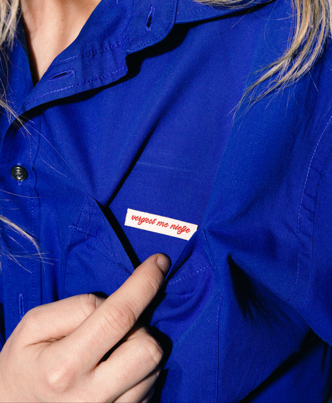 Abel ontstond uit een herinnering aan mijn oma’s naamlabels. Witte geweven lintjes met onze achternaam in rode sierletters, zorgvuldig genaaid in elke (ja, élke) jas, zakdoek of trui. Vandaag duiken ze nog steeds onverwacht op. Dan is het alsof ze weer even hier is.