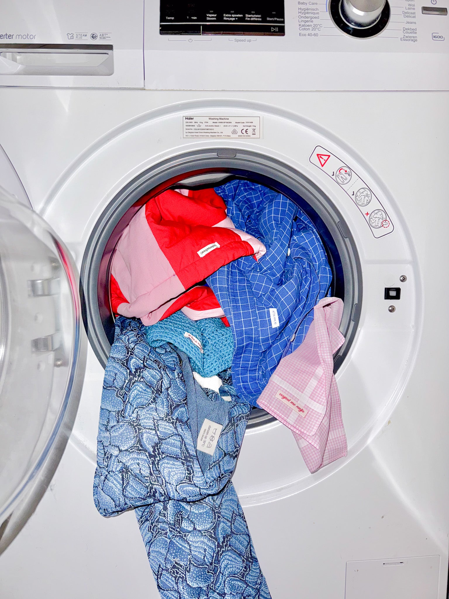 Was kleding altijd binnenstebuiten en strijk het label goed na elke wasbeurt. 👕